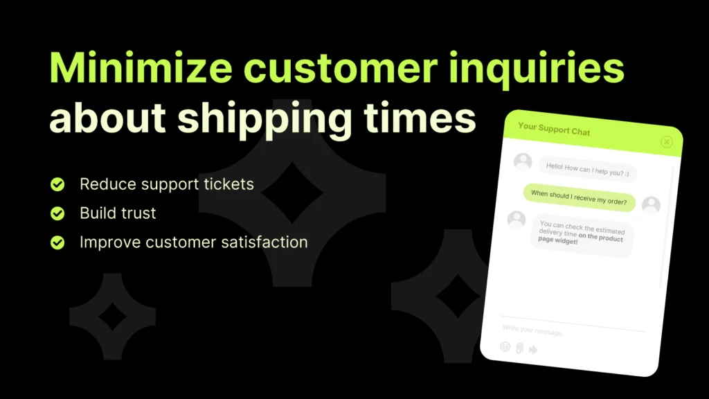 Display exact delivery times and estimated shipping dates on your product pages to reduce uncertainty and customer questions.