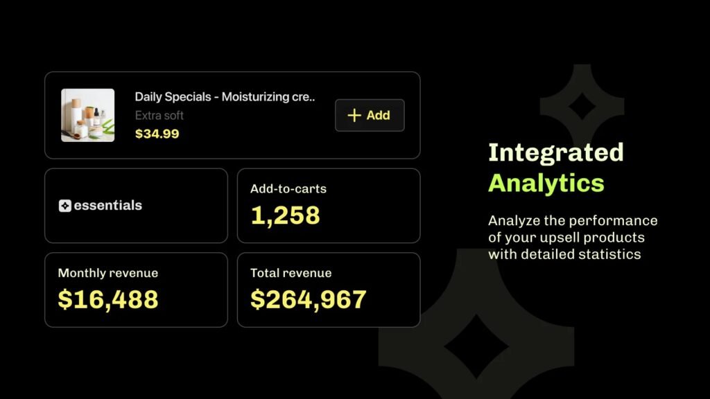 Monitor how your upsells perform and see which ones drive the most sales, all within the app dashboard.
