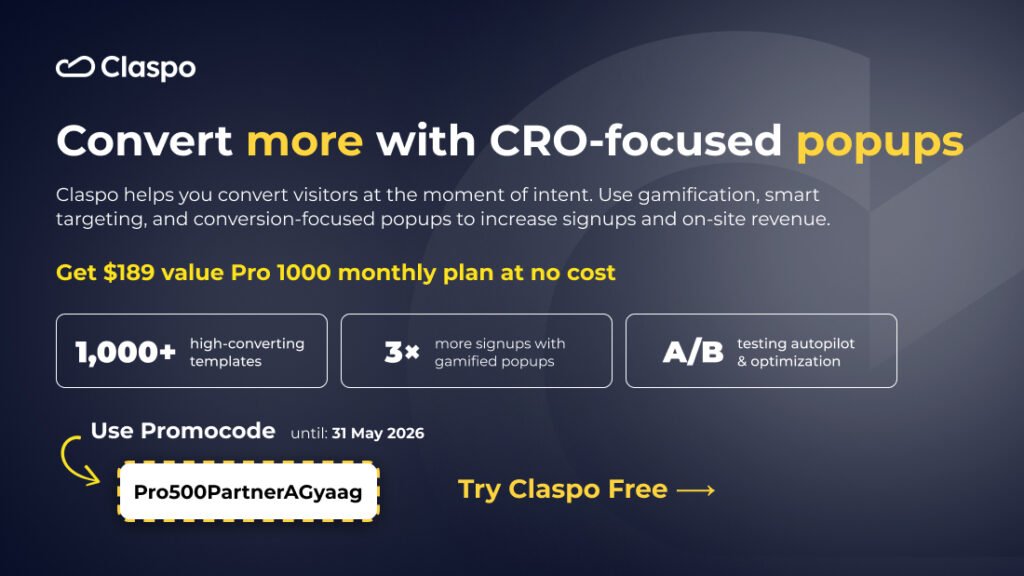 Claspo helps merchants increase conversions and engagement by combining clean design with smart targeting. Its lightweight setup ensures fast page loads while still giving full control over triggers, placements, and messaging logic. Whether you’re running promotions, collecting emails, or highlighting key offers, Claspo supports scalable growth without added friction.