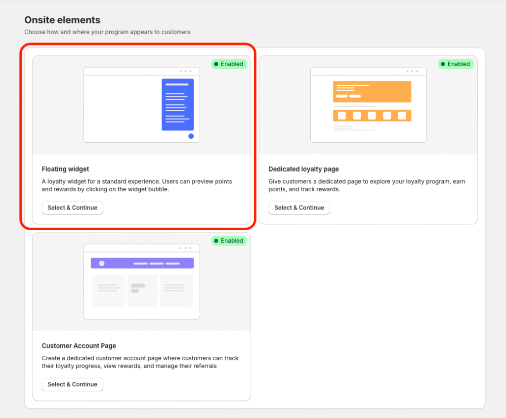 Next, decide how customers will interact with your loyalty program. Essential Loyalty offers three flexible display options: